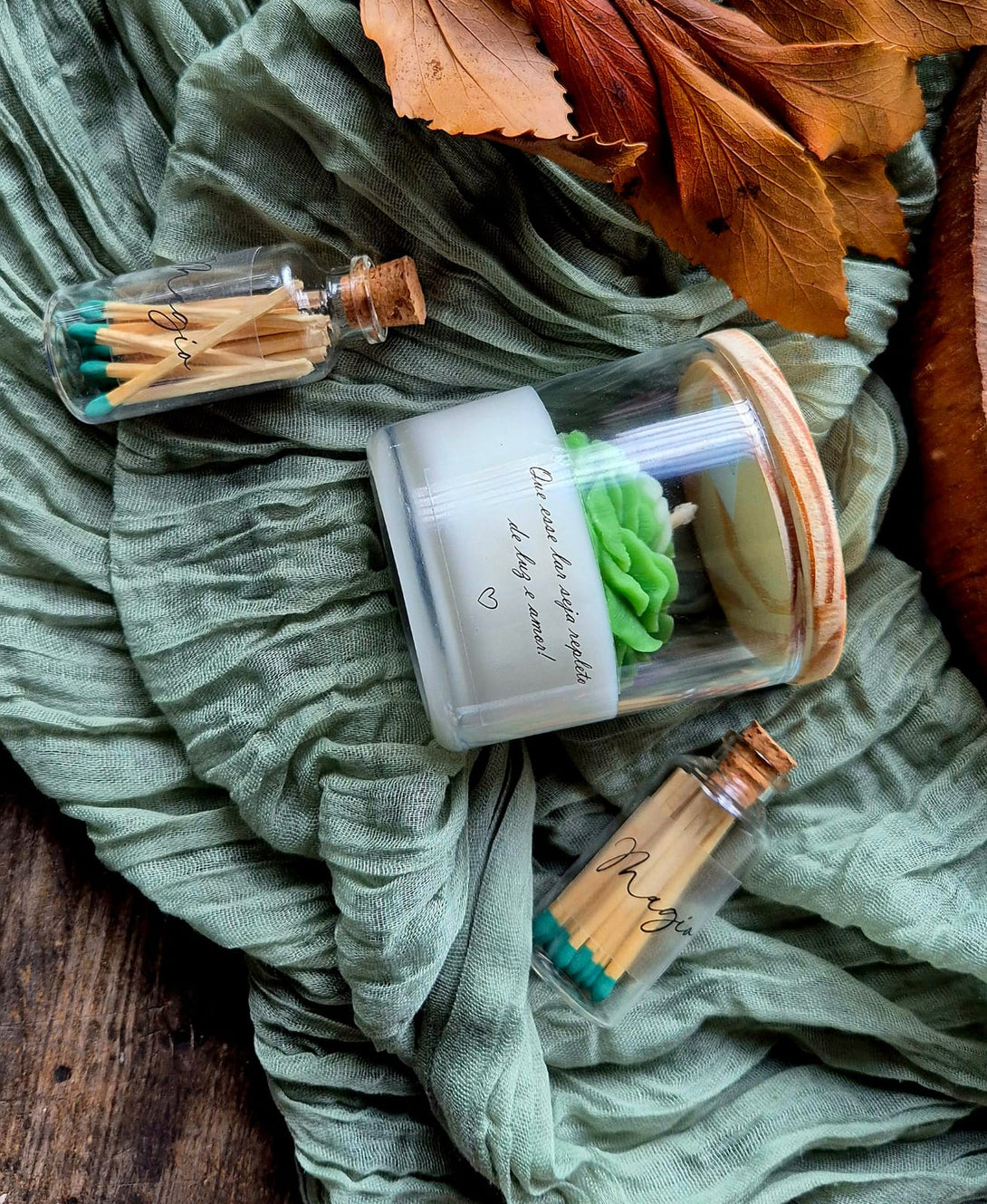 Seu copo de vidro transparente realça o charme artesanal dessa peça única, trazendo aroma, aconchego e sofisticação para qualquer ambiente.
